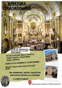 On the occasion of the 39th edition of “Mare e Monti” in Arenzano, two true gems of the town’s historical and spiritual heritage will open their doors to the public for a special visit: the Oratory of Santa Chiara and the Sanctuary of Our Lady of the Annunciation of the Olivette.